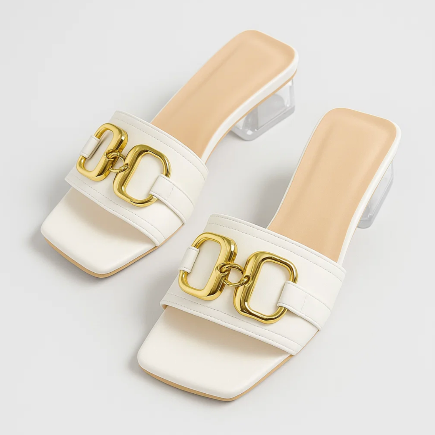 El tacón bajo transparente aporta ligereza visual y comodidad, ofreciendo una pisada estable perfecta para llevarlos durante horas sin esfuerzo.