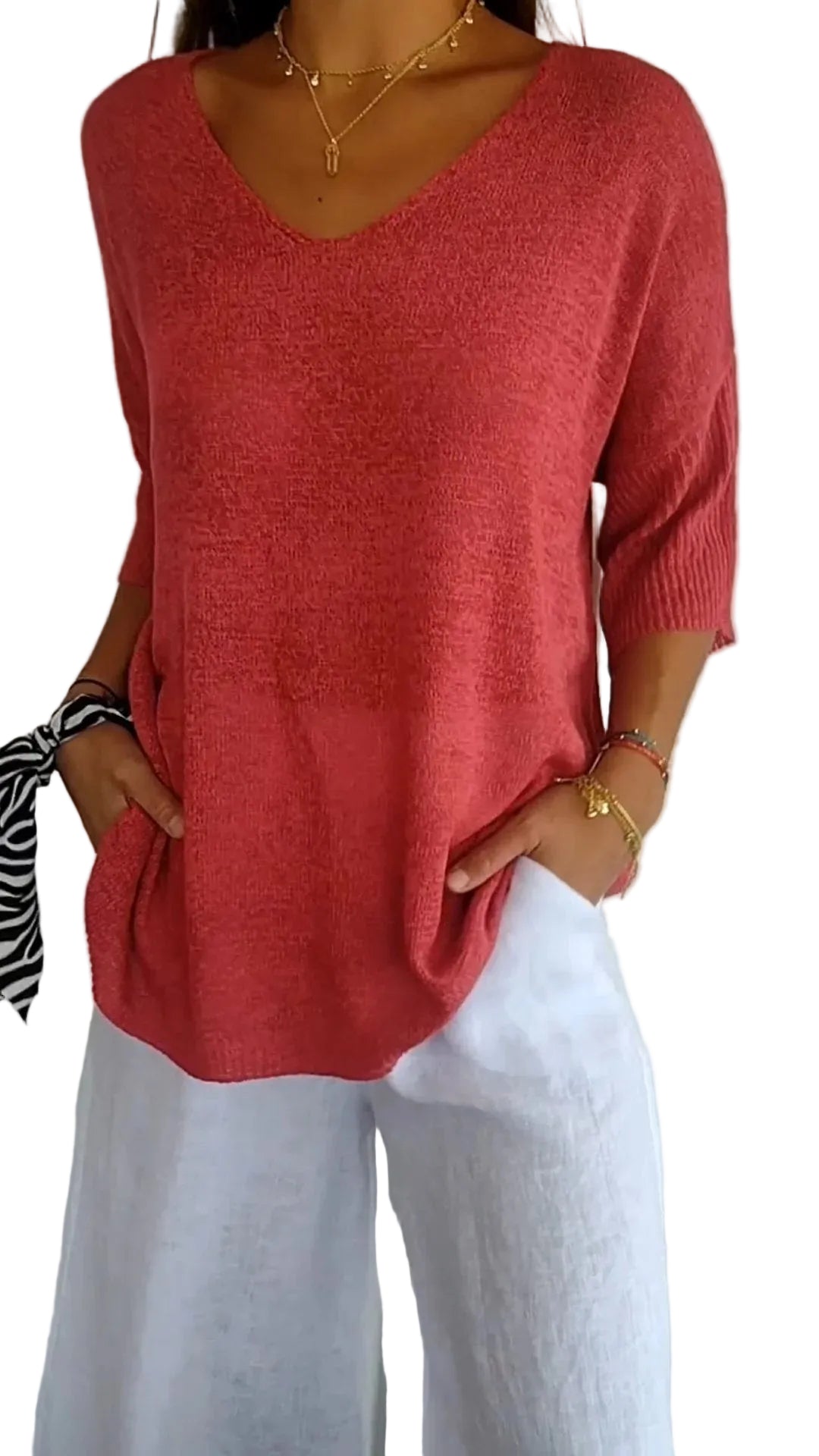 Un top con escote en V que destaca por su estilo sencillo y atemporal.
