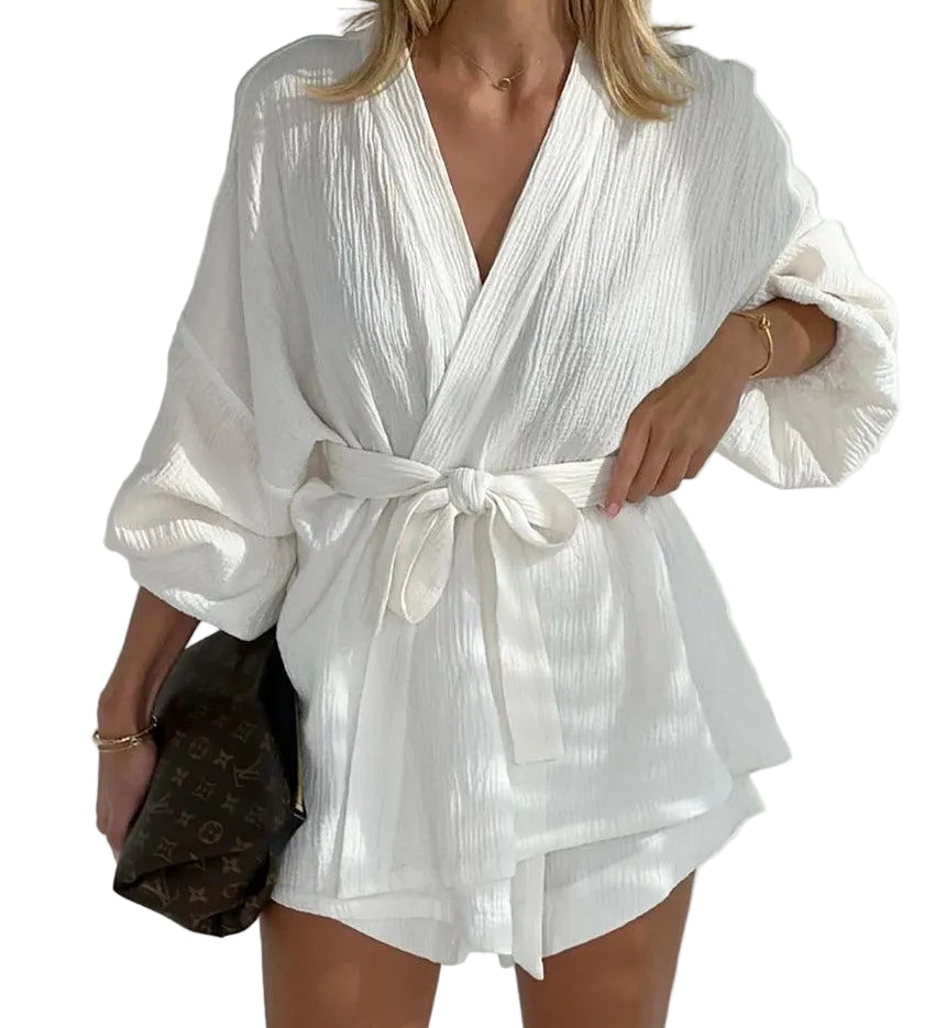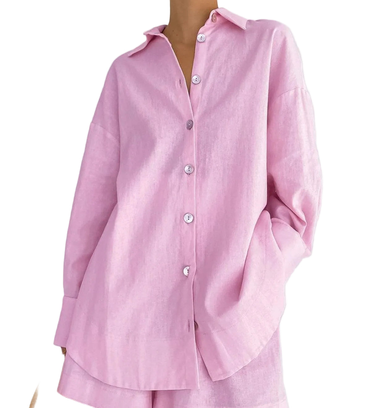 CONJUNTO DE SHORTS HOLGADOS Y MANGA LARGA EN LINO