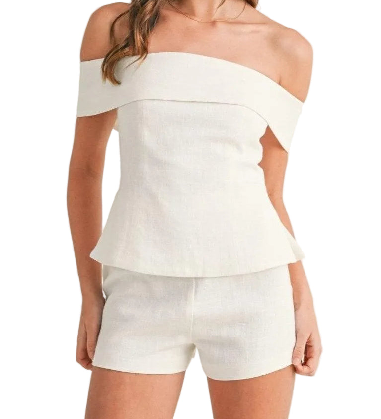 CONJUNTO DE DOS PIEZAS DE ALGODÓN Y LINO BLANCO