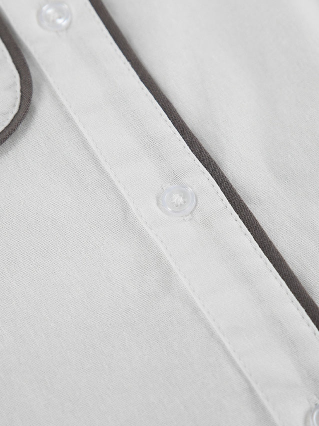 Conjunto de duas peças em algodão e linho com camisa e shorts em contraste preto e branco