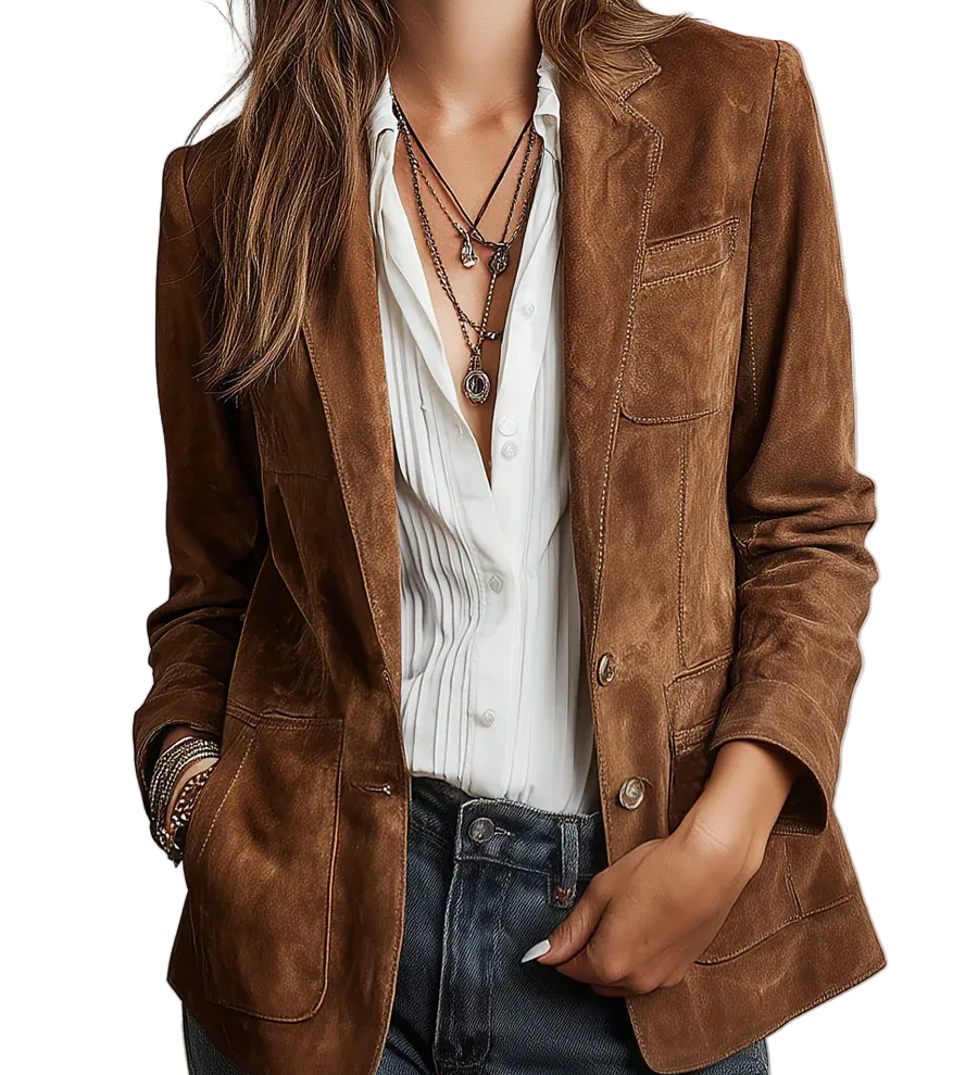 CHAQUETA DE ANTE MARRÓN DE ESTILO VINTAGE