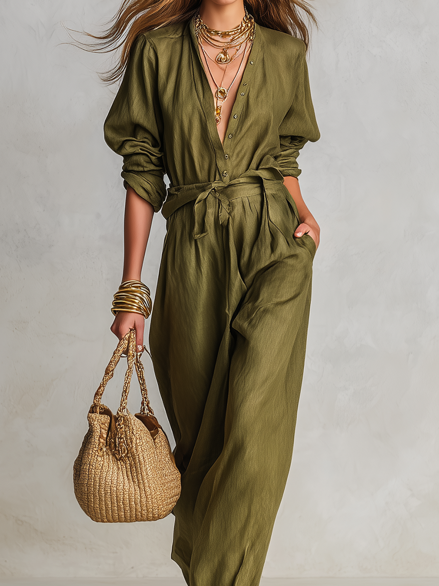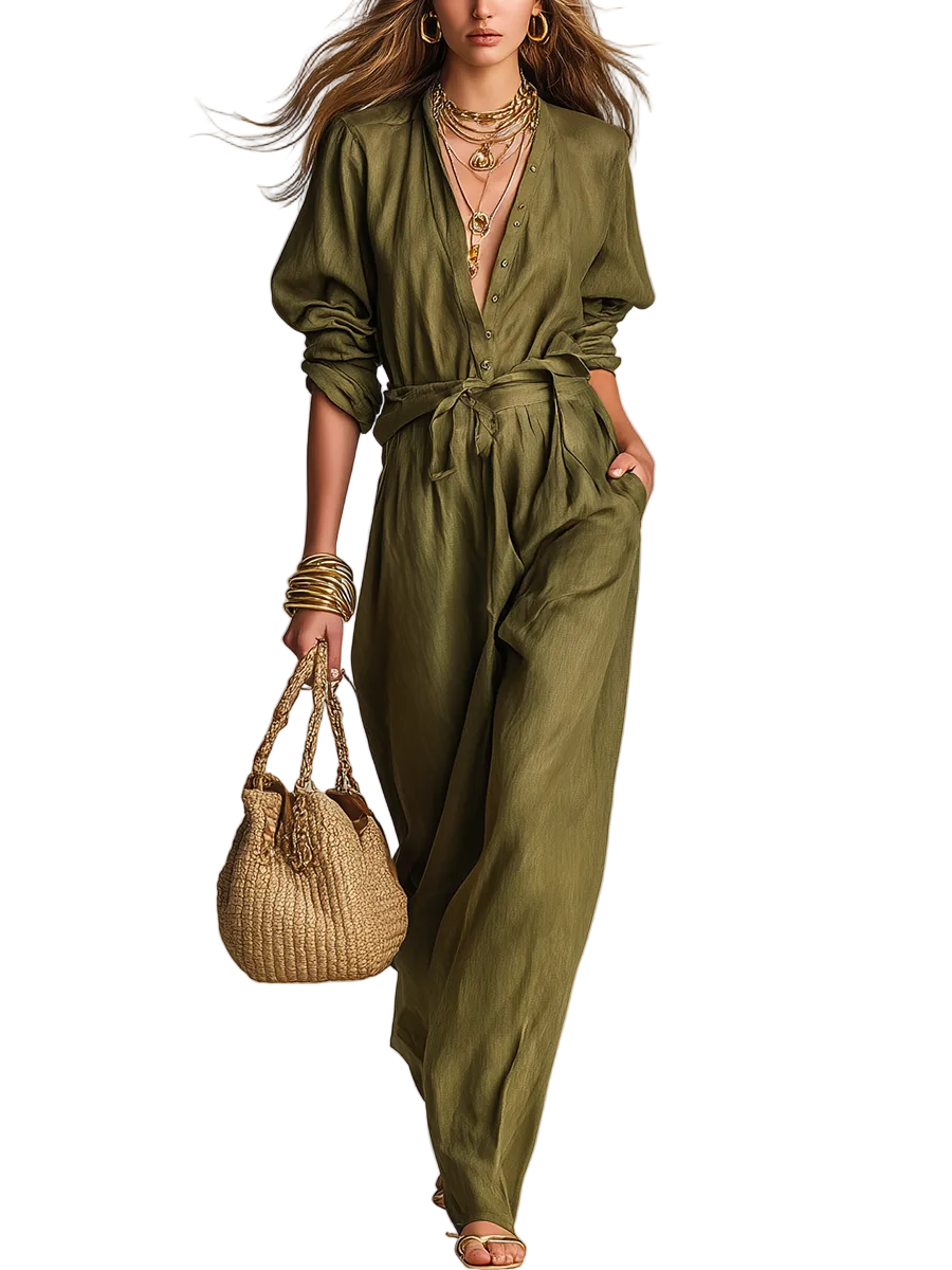 Sophisticated Olive Green Linen Jumpsuit