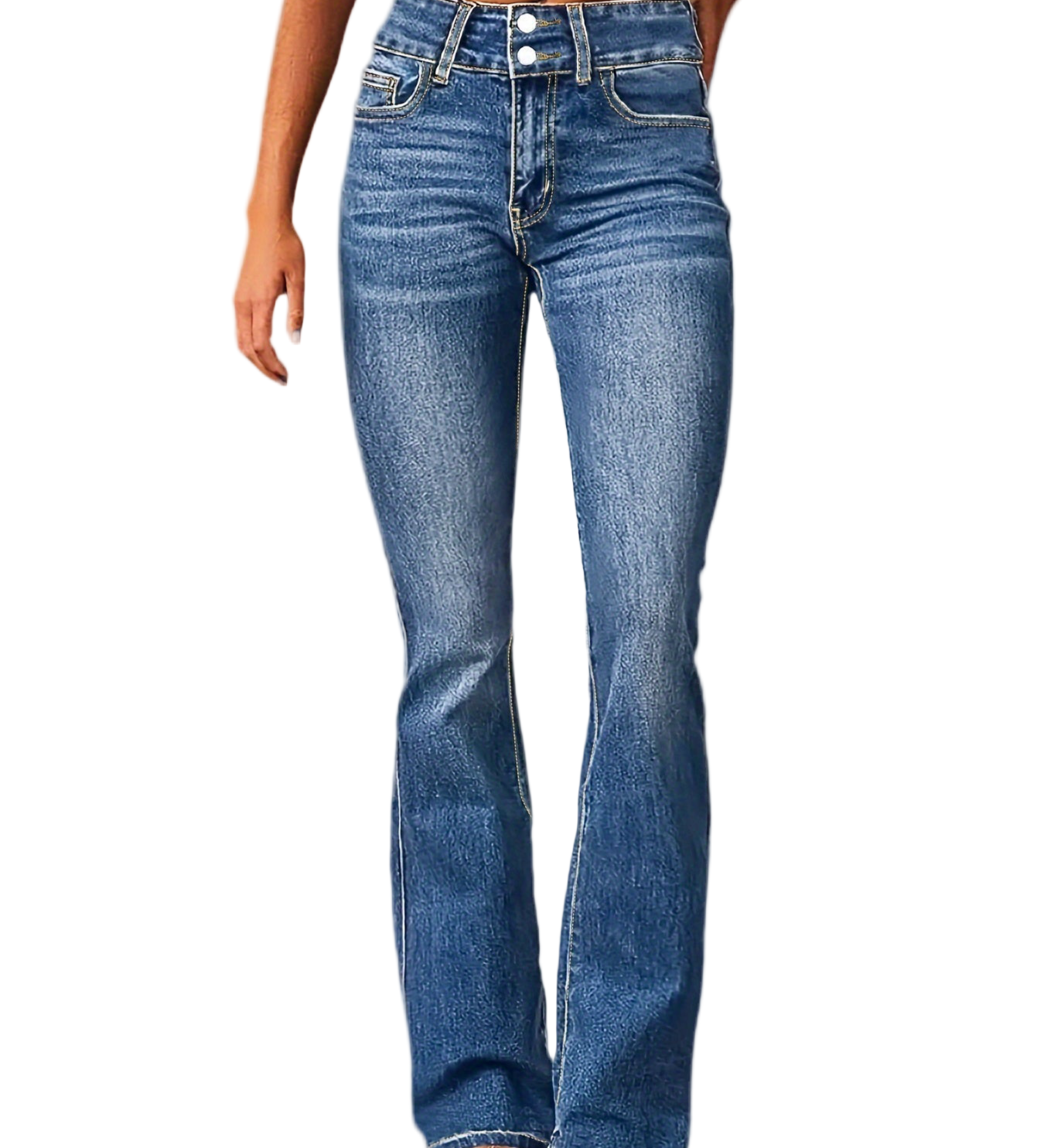 JEANS DE CINTURA ALTA Y PIERNA LARGA