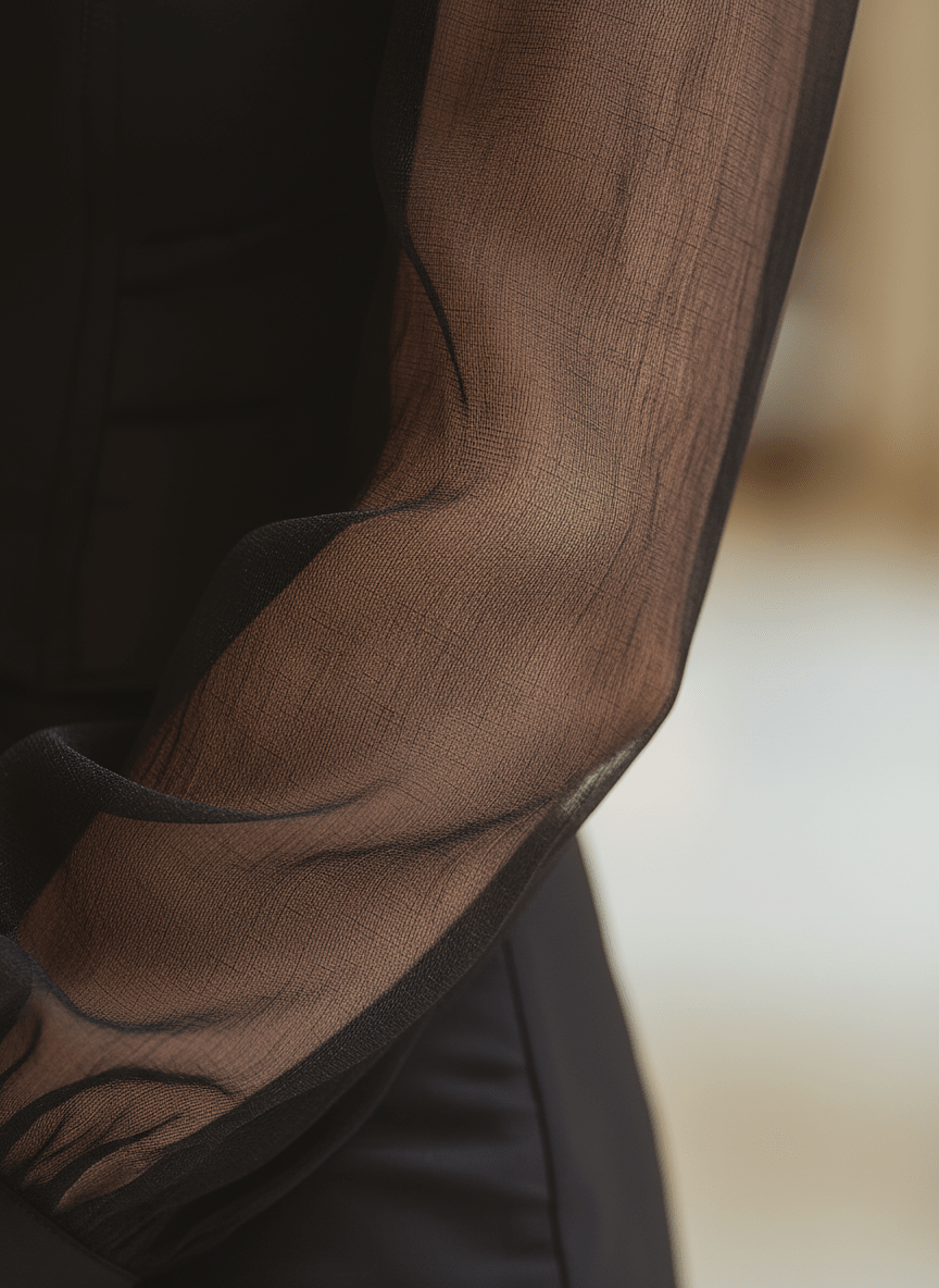 Sofisticado y con un aire moderno, este vestido mini negro destaca por su silueta ajustada y su diseño elegante. El panel de mesh semitransparente aporta un contraste sutil y actual, elevando el look con un toque sensual y refinado.
