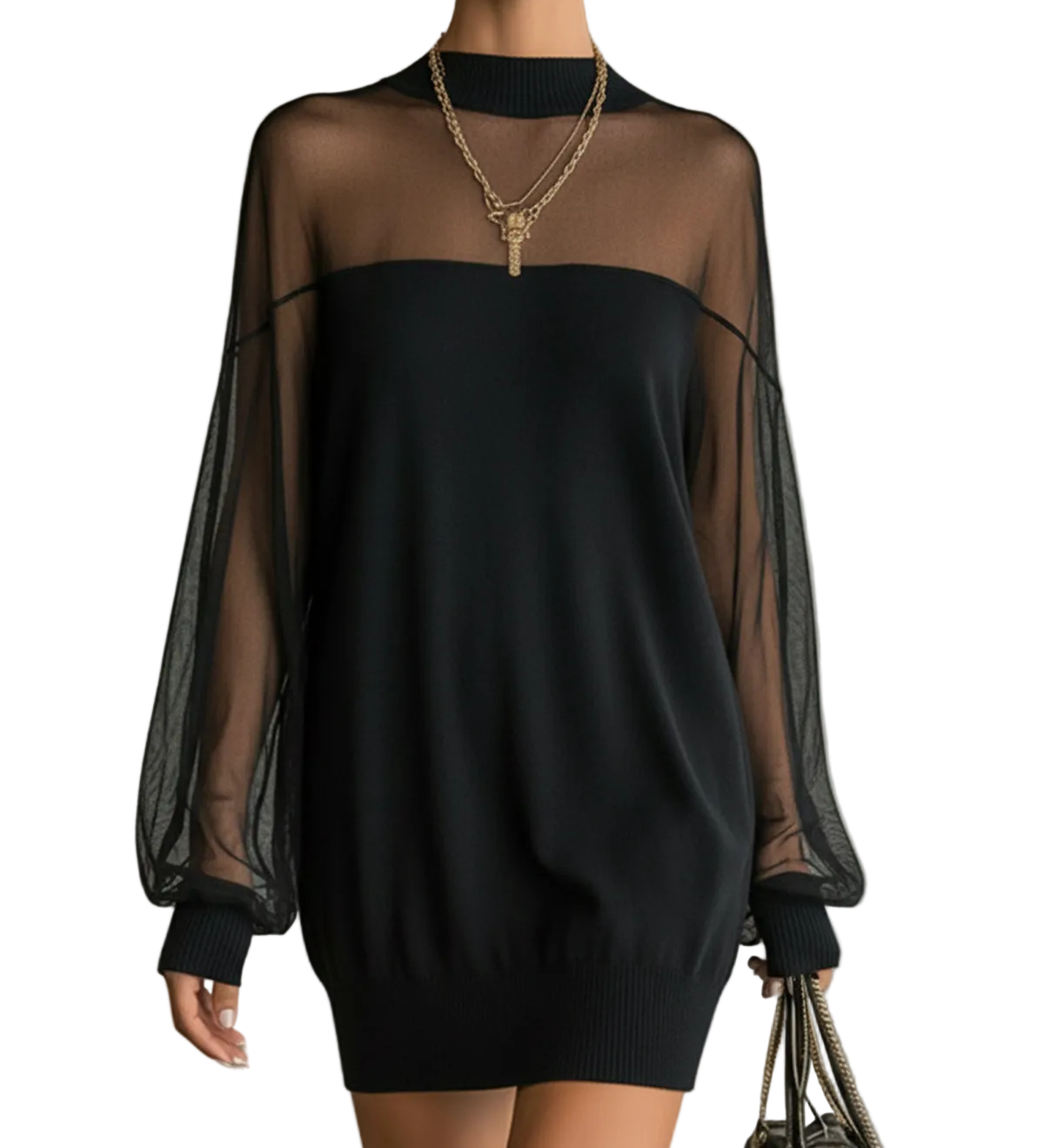 VESTIDO MINI NEGRO CON CUELLO ALTO