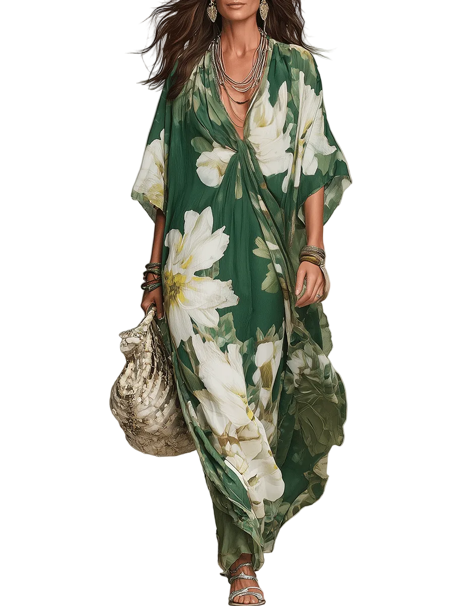 Emerald Bloom Flowing Bohemian Maxi Dress