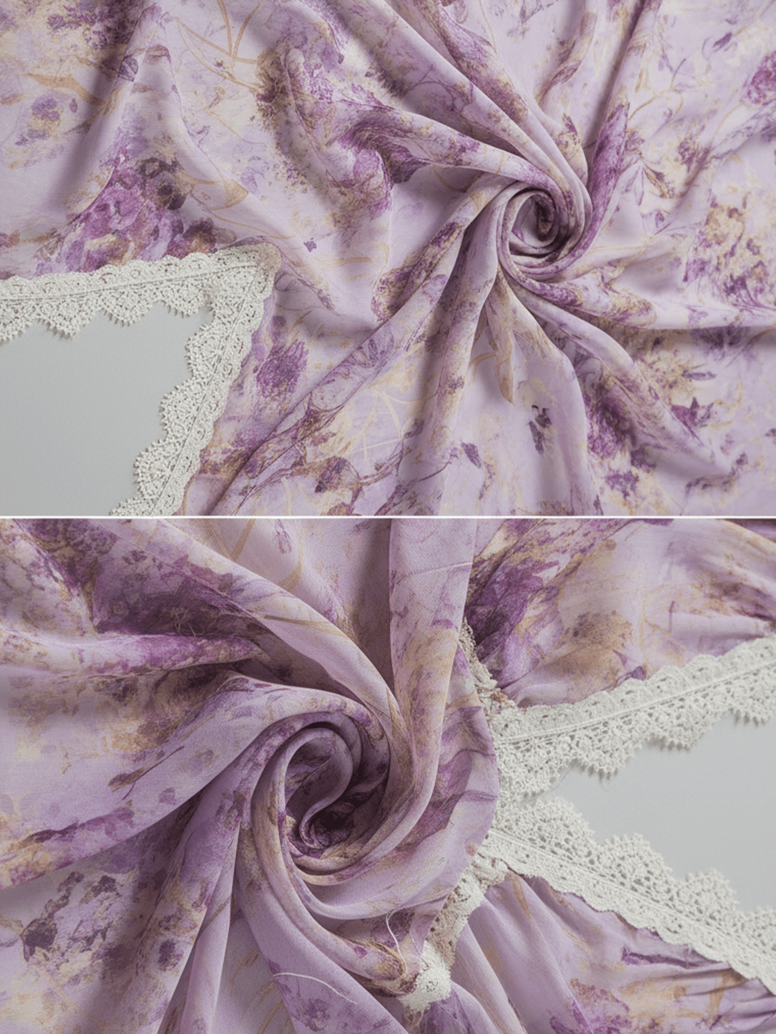 • Estampado acuarela en tonos lavanda suaves y elegantes.