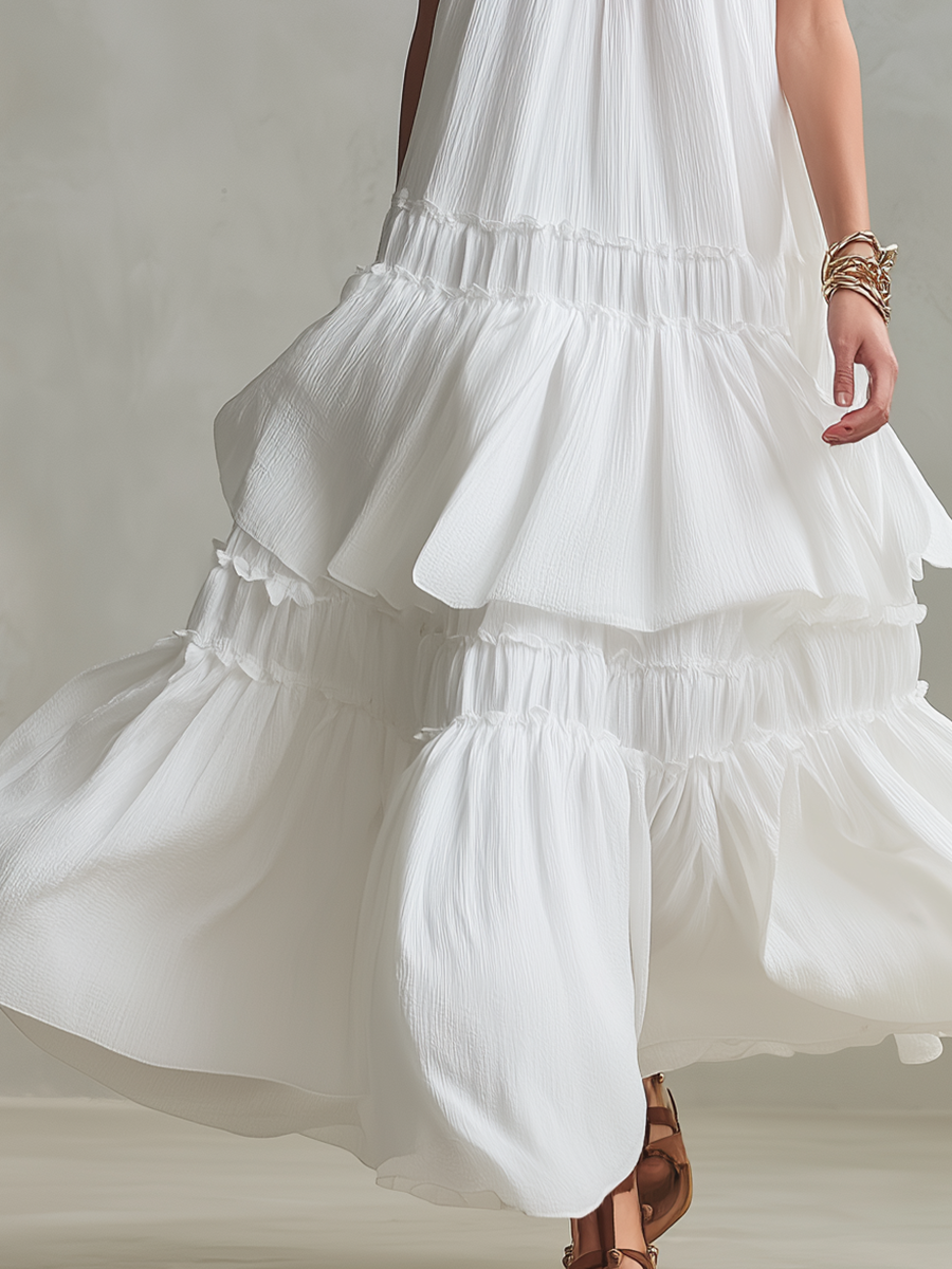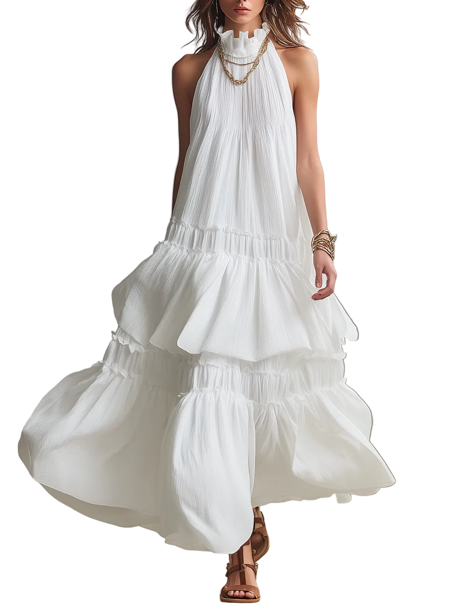 Airy High-Neck Tiered Bohemian Maxi Dress