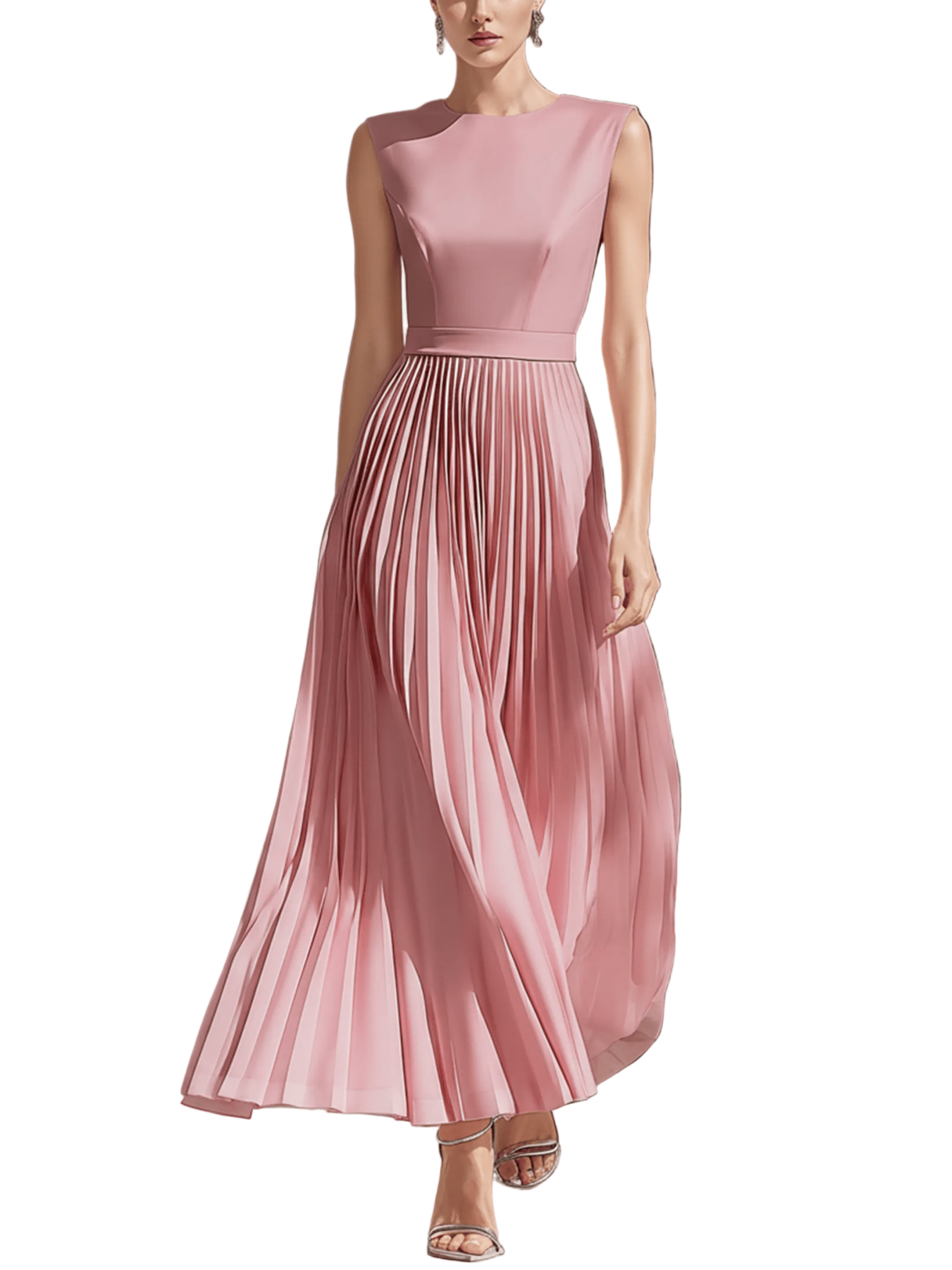 Formato: Vestido largo con cuerpo estructurado y falda plisada.
