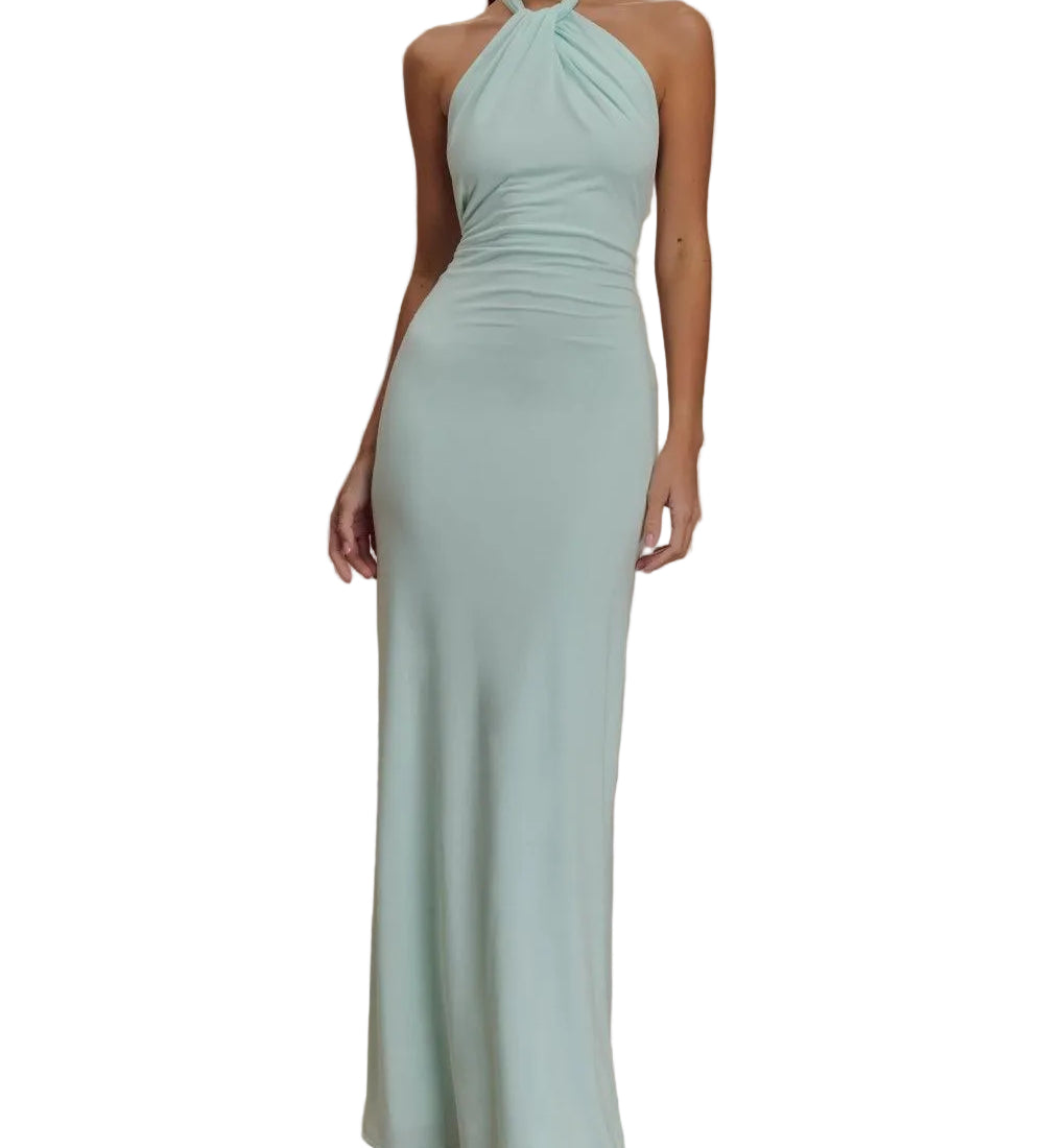 VESTIDO MAXI HALTER DE SILUETA FLUIDA EN AZUL LAGUNA