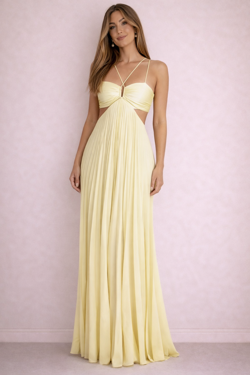 Women's Wedding Guest Pleated Halter Maxi Dress