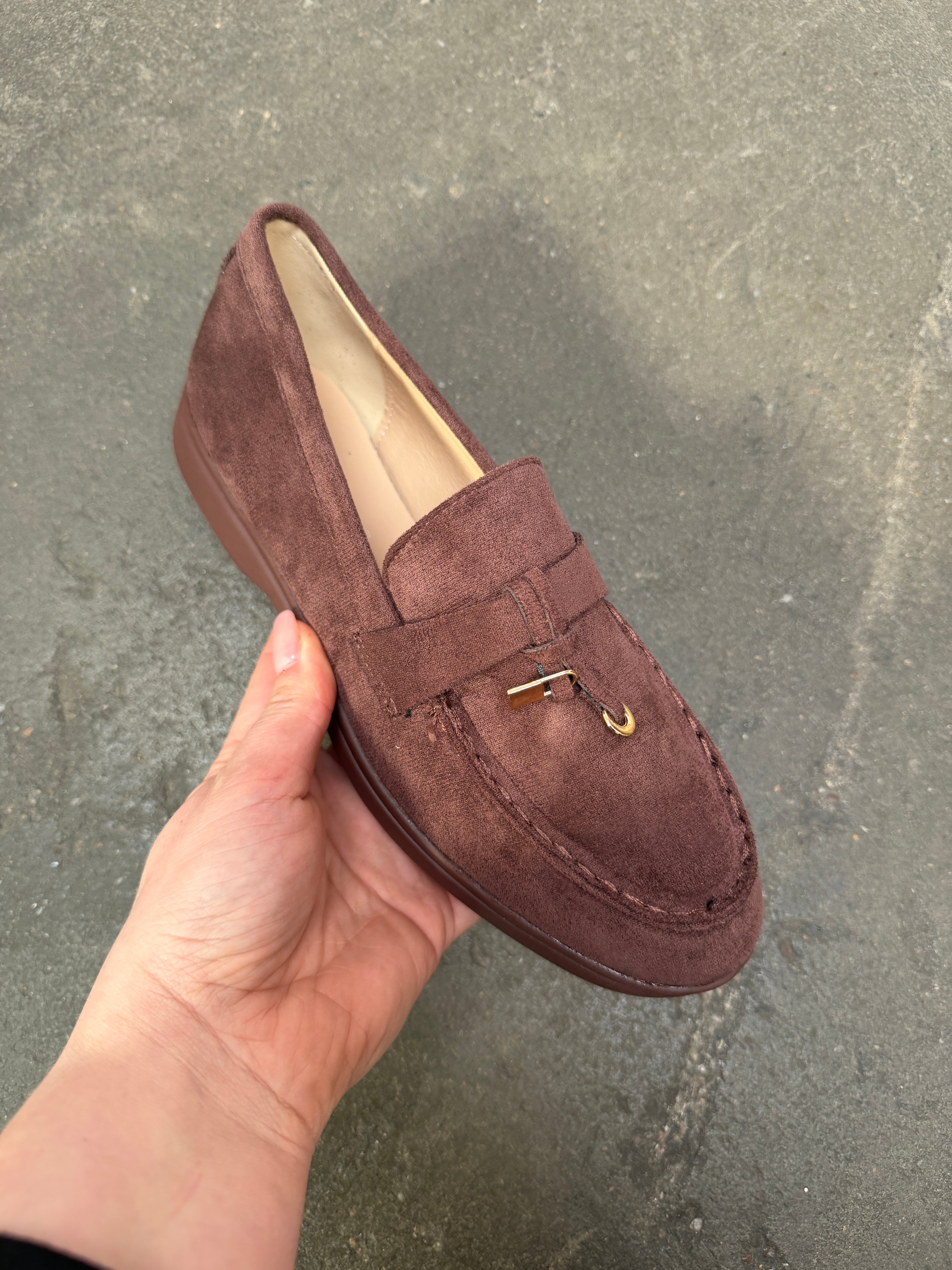 Estos mocasines destacan por su tono marrón clásico, ideal para crear looks elegantes y equilibrados. Su diseño limpio y atemporal los convierte en una opción versátil que se adapta tanto a outfits formales como a combinaciones más relajadas.